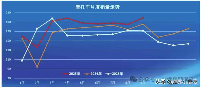 1-9月,共产销摩托车1636.61万辆和1633.63万辆,产销量同比增长9.89%和9.31%。