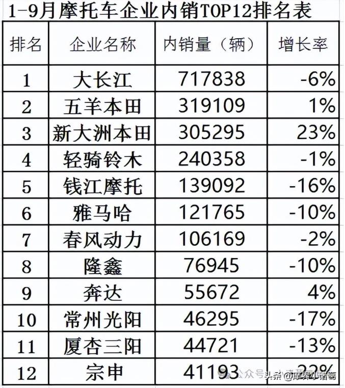 昨天我就提前发摩托车生企业内销前12排名表: