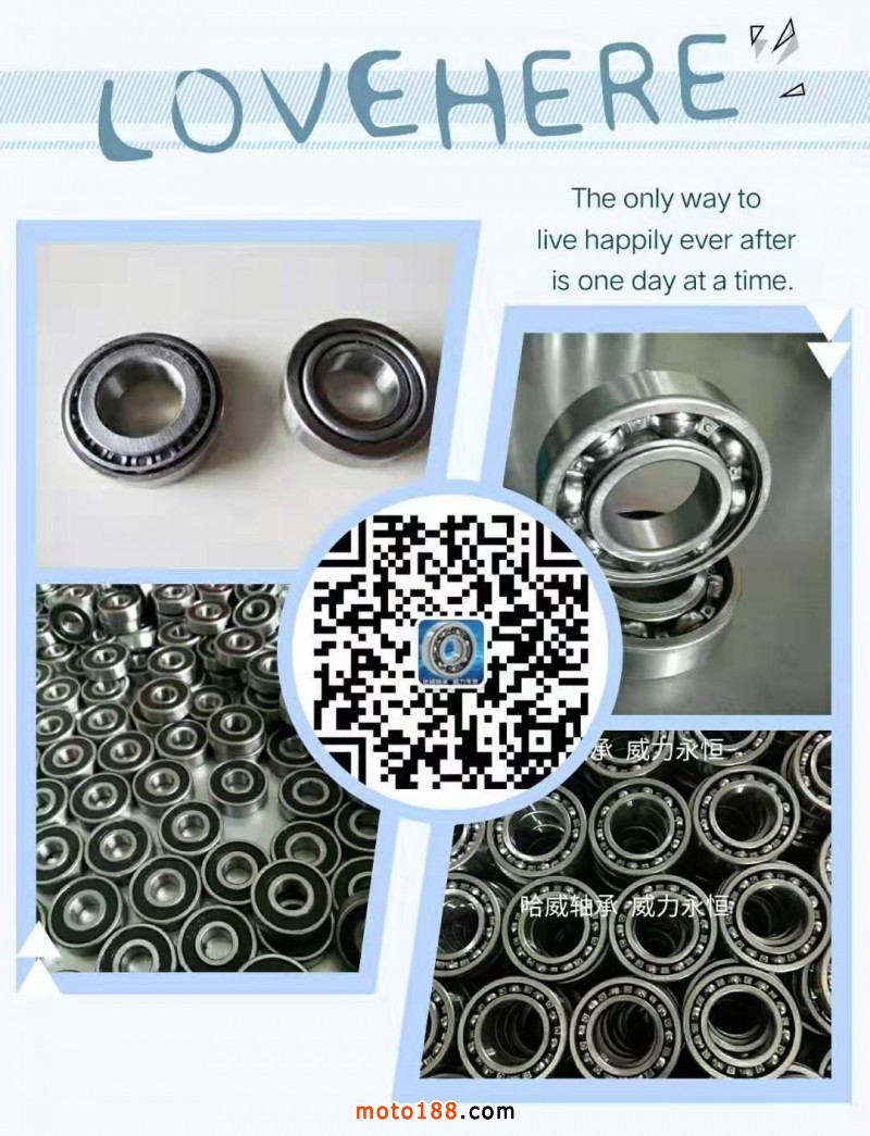 哈威轴承有限公司专业生产:摩托二、三轮车轴承,电动二、三轮车轴承,及方向压力轴承,6004 6008 6200 6201 6202 6203 6204 6205 6206 6300 6301 6302 6304 30205 768906 698909 91683/22.5 加强91683/22.5等型号齐全,出口非洲、东南亚及南美,可贴牌OEM, 携手合作    共赢未来! 联系电话️:151 9218 8708(微信)、商务QQ:1396956945。