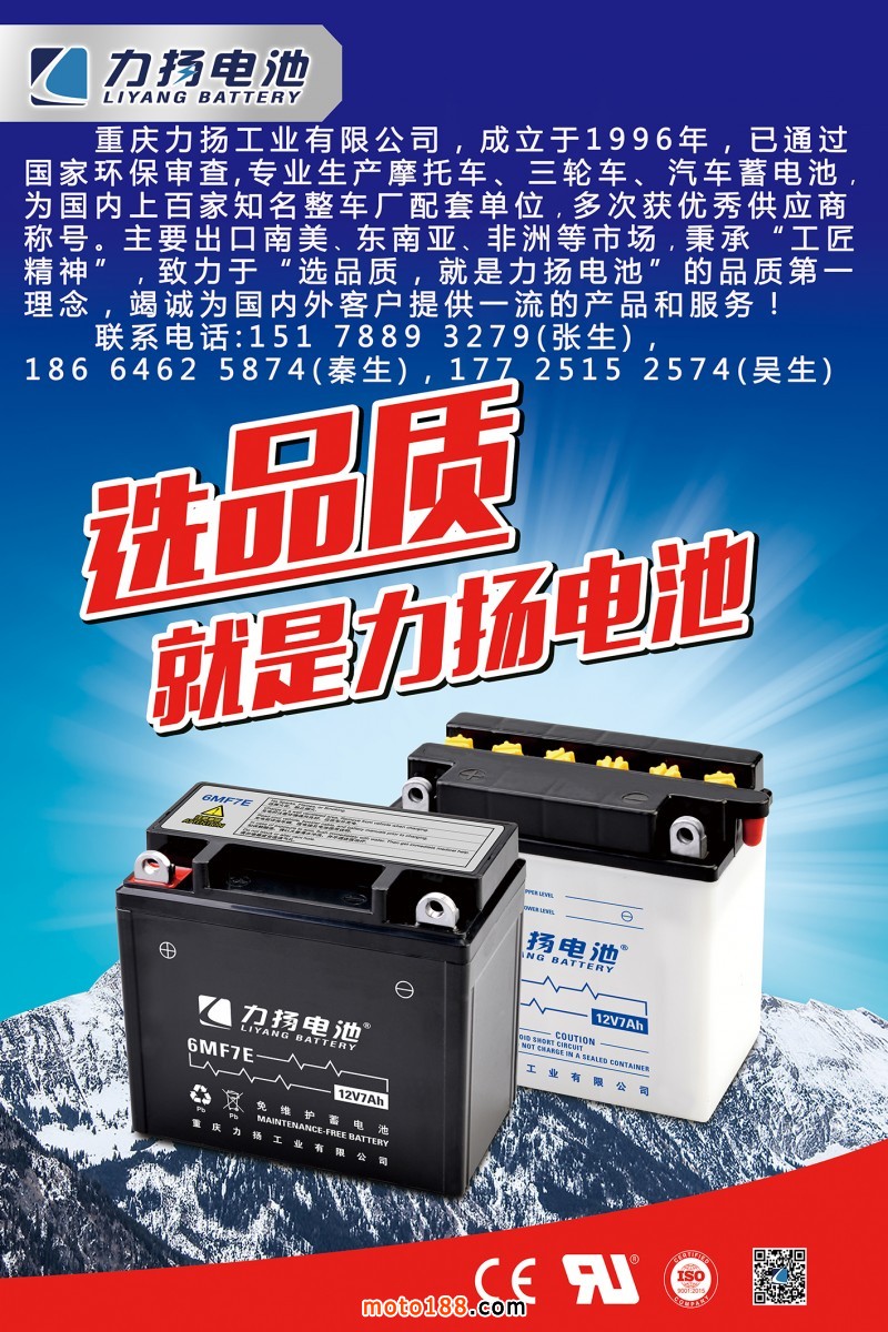 重庆力扬工业有限公司,成立于1996年,已通过国家环保审查,专业生产摩托车、三轮车、汽车蓄电池,为国内上百家知名整车厂配套单位,多次获优秀供应商称号。主要出口南美、东南亚、非洲等市场,秉承“工匠精神”,致力于“品质,就是力扬电池”的品质第一理念,竭诚为国内外客户提供一流的产品和服务!