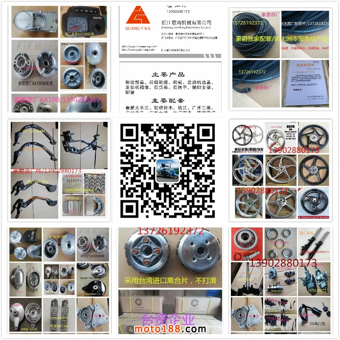 专业生产摩托车制动鼓、链轮座、发动机边盖。主要配套:豪爵、轻骑铃木。另小梁兼营:豪爵独家配套的油管、铝轮、刹车片、时规链、等HJ原厂件,