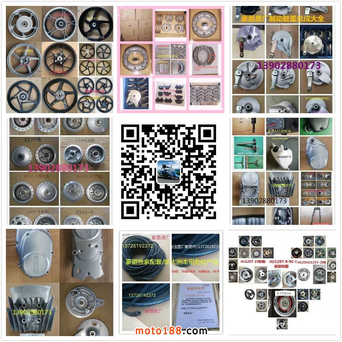 浙江君鸿(广鹰)专业生产摩托车制动鼓、链轮座、发动机边盖。主要配套:豪爵、轻骑铃木。另兼豪爵/本田/BAJAJ/TVS铝轮、豪爵刹车片、油管,等HJ原厂件,电话:13902880173。