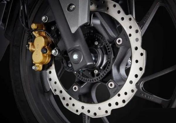 五羊本田国四猛鸷的卖点之一是前轮标配有汽车级ABS防抱死制动系统。智能地控制制动力,以防止前轮被锁定,并在突然制动时保持前轮与地面的附着力,以防止发生侧滑和甩尾之类的危险情况,从而提供安全可靠的制动效果。