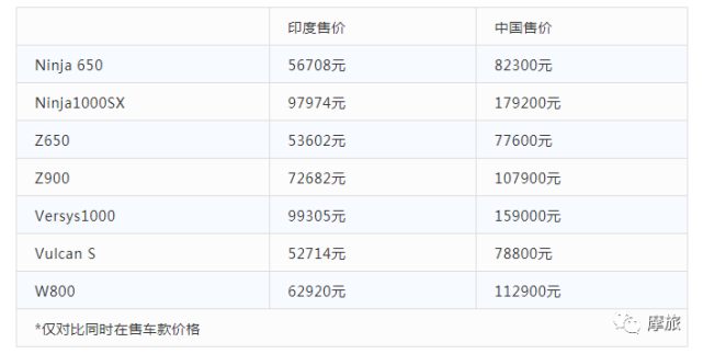 从相差结果来看,究其原因有三,一、进口产品在国内品牌附加值要高。二、印度推出的川崎车型是通过组装进口或部分组装小件本地生产的形式在印度销售,成本有优势。三,中国川崎多为泰产,虽享受东盟贸易总协定所规定的零关税,但物流成本也间接让国内川崎售价有了涨幅。