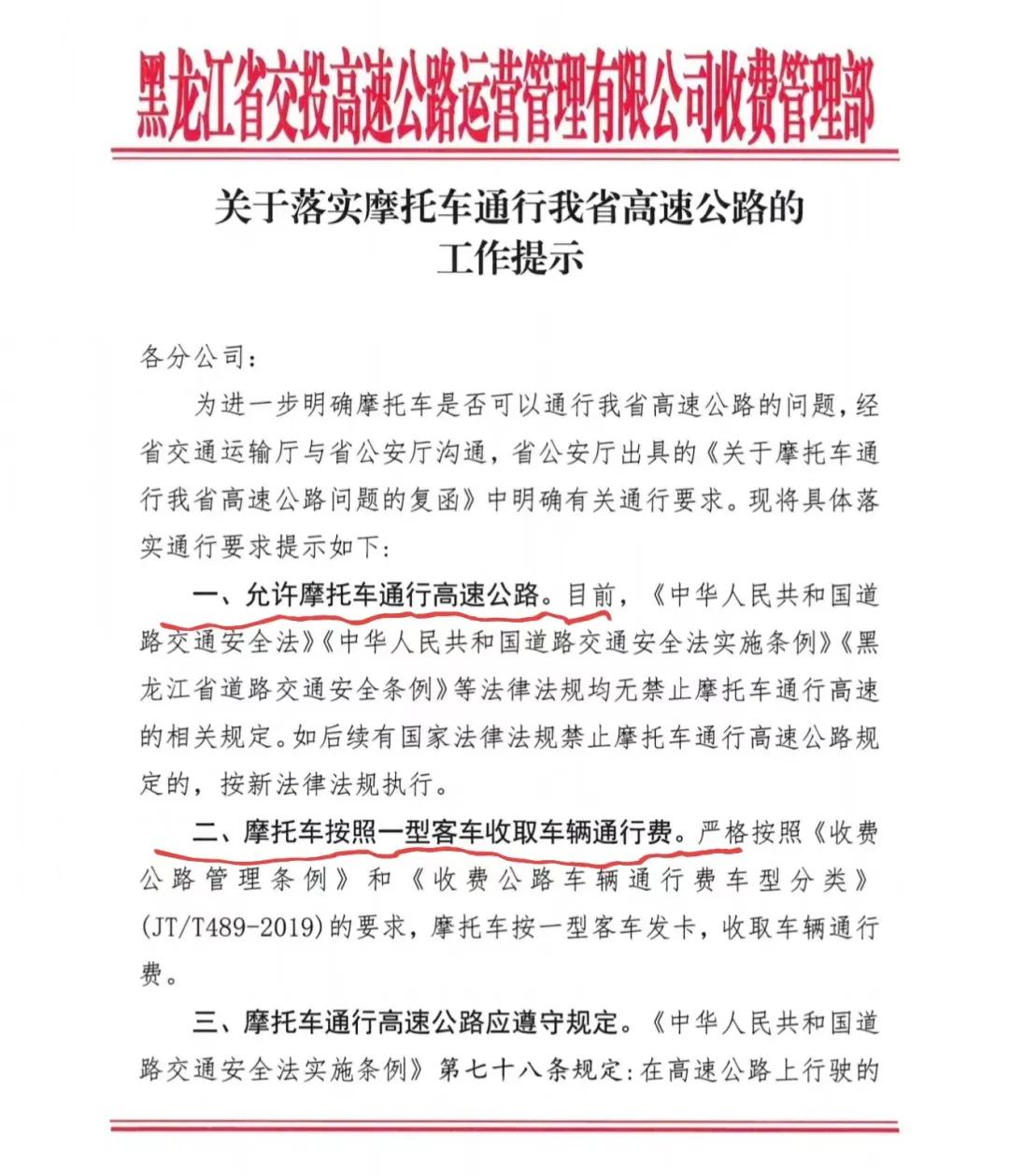1. 黑龙江率先明确:燃油摩托可上高速,电摩排除在外