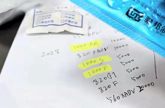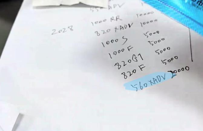 尽管镜头扫过桌面的时间很短,但是依旧逃不过大家雪亮的眼睛。从这张手写的纸上我们看到了大量不同型号的车型,而且前面还有2028的字样,显而易见这些车型张雪计划在2028年推出。但是遗憾的是上半部分的一些车型被遮住了,依稀可见最后一台型号为550ADV。