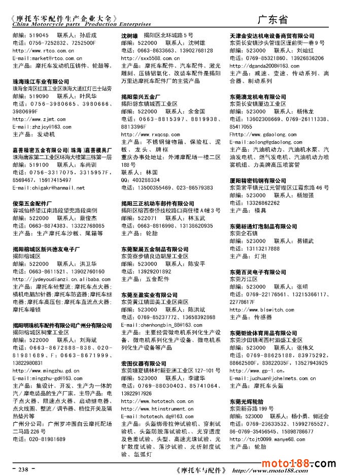2010版摩托车配件生产企业大全