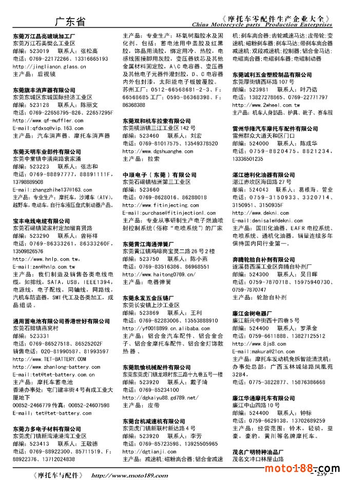 2010版摩托车配件生产企业大全