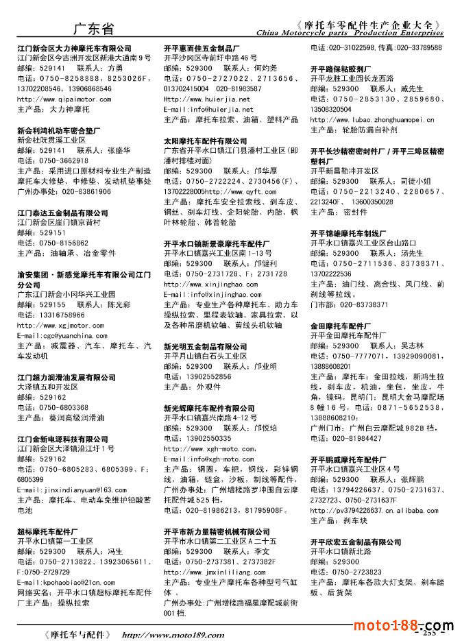 2010版摩托车配件生产企业大全