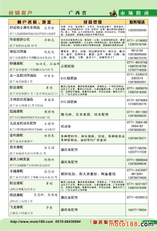 广西省摩托车配件经销商户