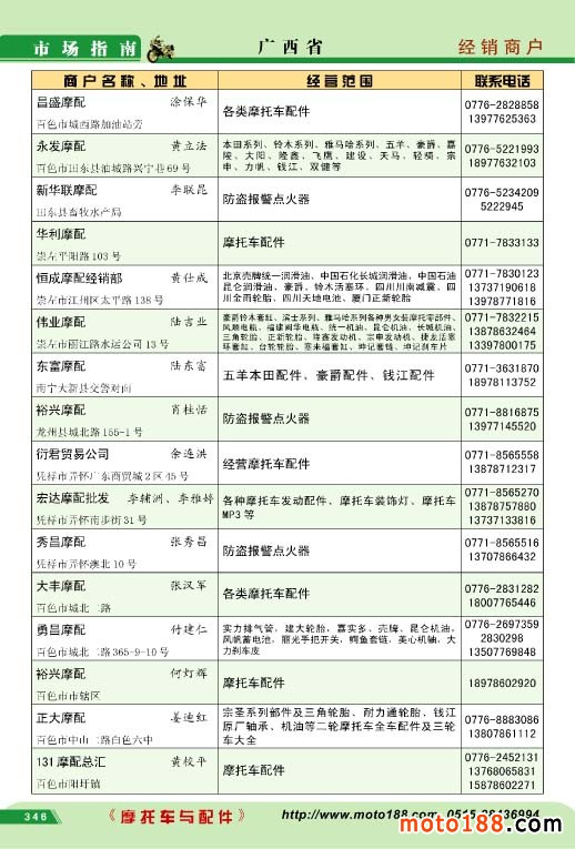 广西省摩托车配件经销商户