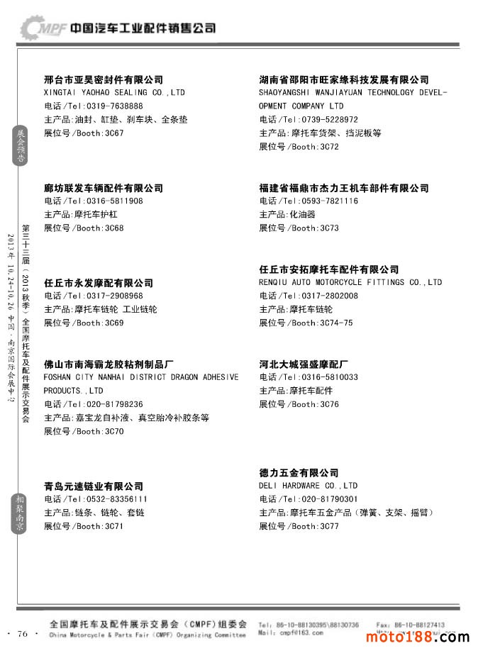 第33届春季(济南)全国摩托车及配件展示交易会参展企业名录