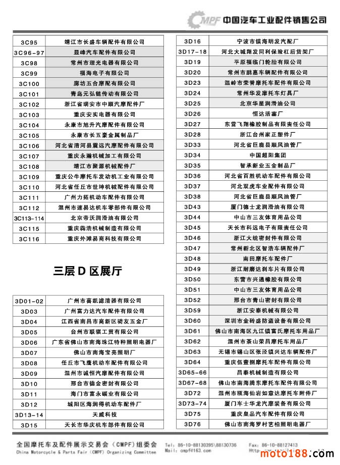 第33届春季(济南)全国摩托车及配件展示交易会参展单位名录