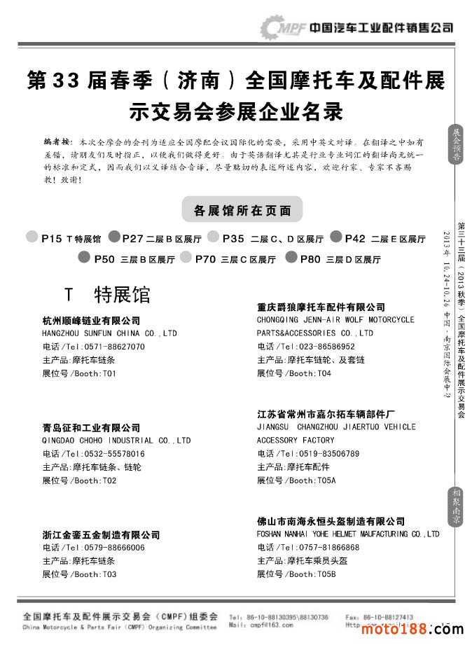 第33届春季(济南)全国摩托车及配件展示交易会参展企业名录