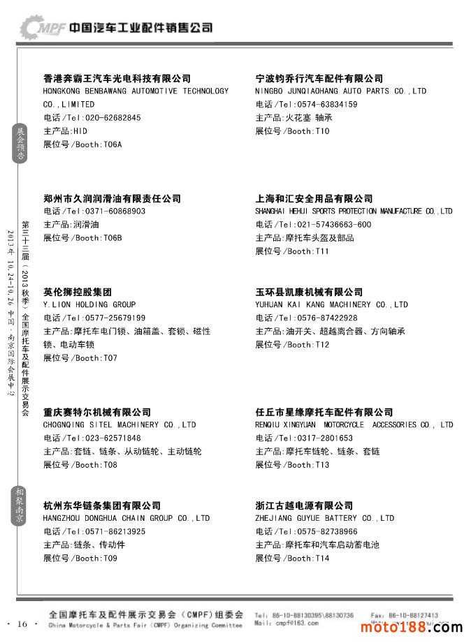 第33届春季(济南)全国摩托车及配件展示交易会参展企业名录