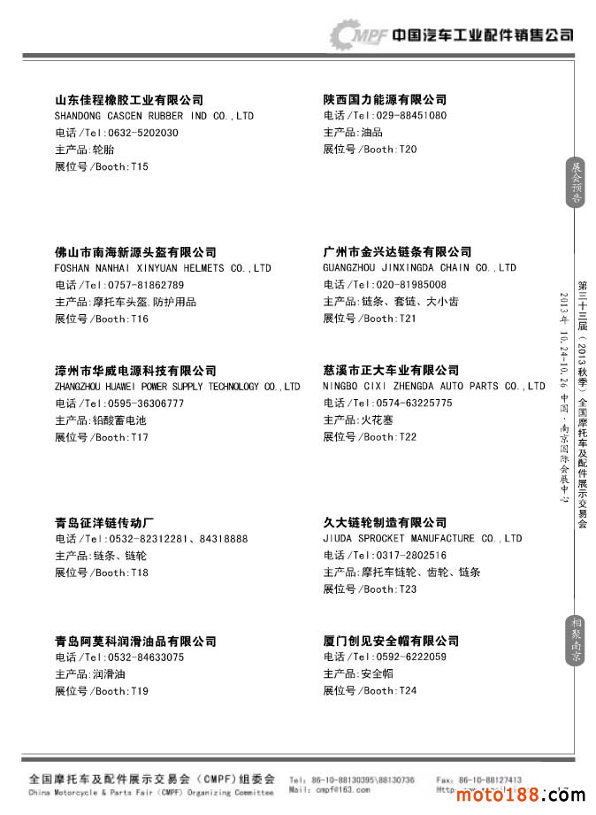 第33届春季(济南)全国摩托车及配件展示交易会参展企业名录
