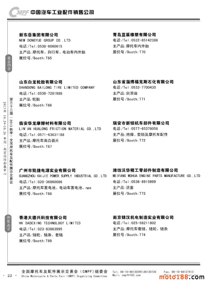 第33届春季(济南)全国摩托车及配件展示交易会参展企业名录