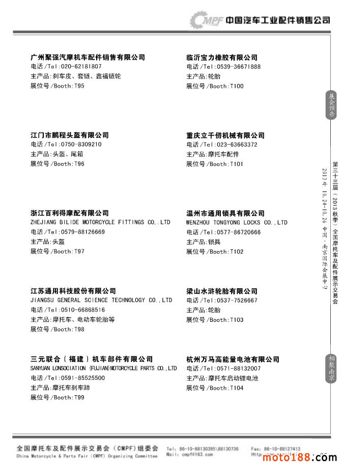 第33届春季(济南)全国摩托车及配件展示交易会参展企业名录