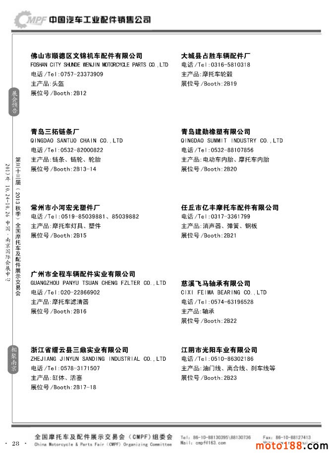 第33届春季(济南)全国摩托车及配件展示交易会参展企业名录