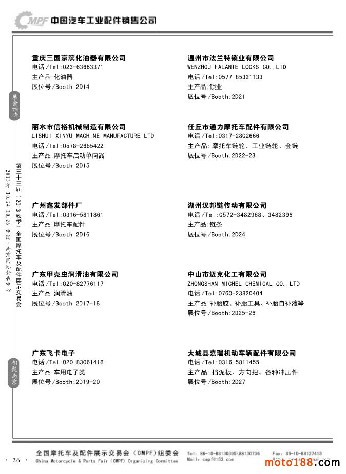 第33届春季(济南)全国摩托车及配件展示交易会参展企业名录