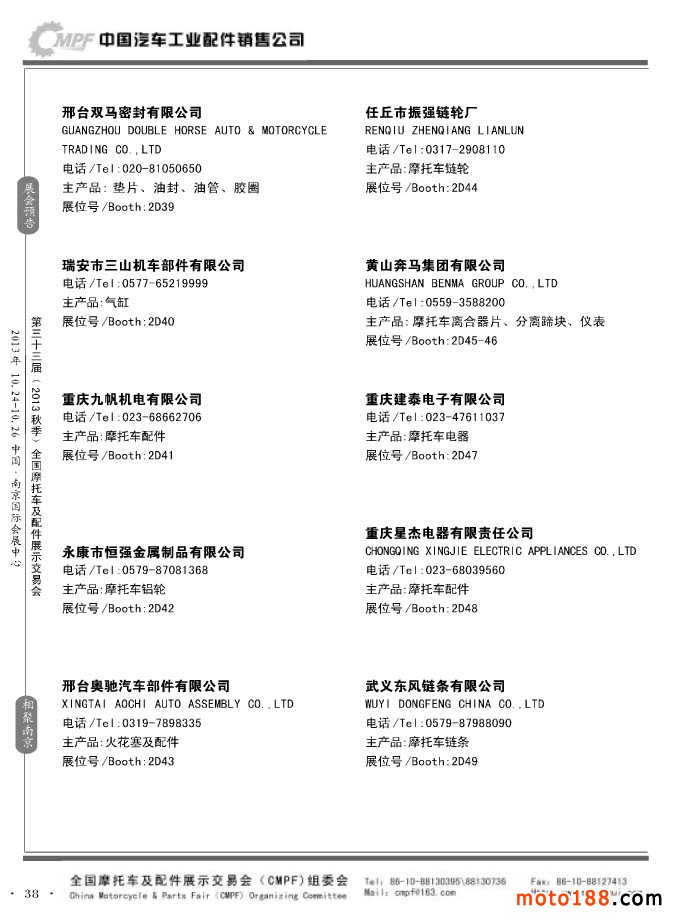 第33届春季(济南)全国摩托车及配件展示交易会参展企业名录