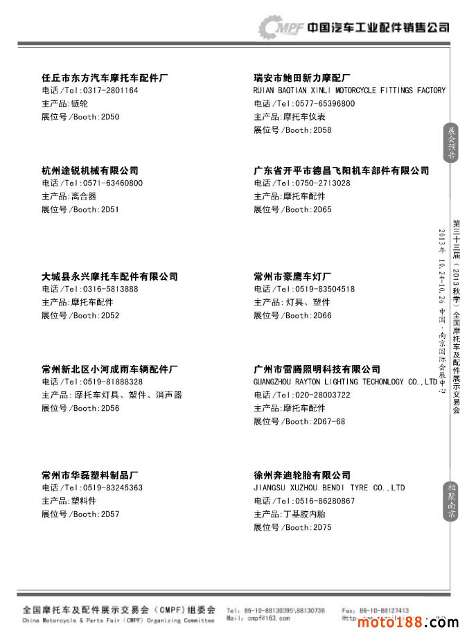 第33届春季(济南)全国摩托车及配件展示交易会参展企业名录
