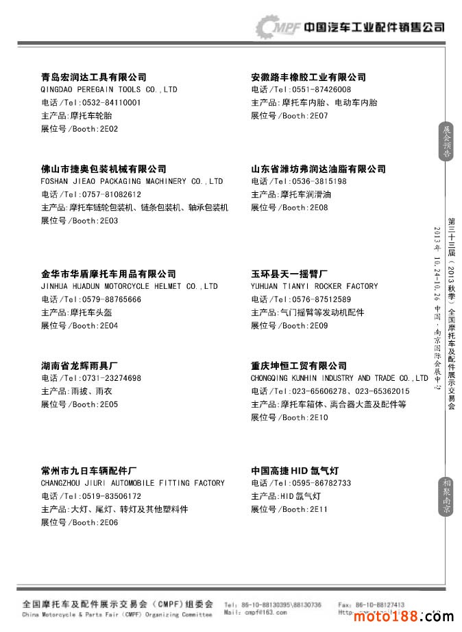 第33届春季(济南)全国摩托车及配件展示交易会参展企业名录