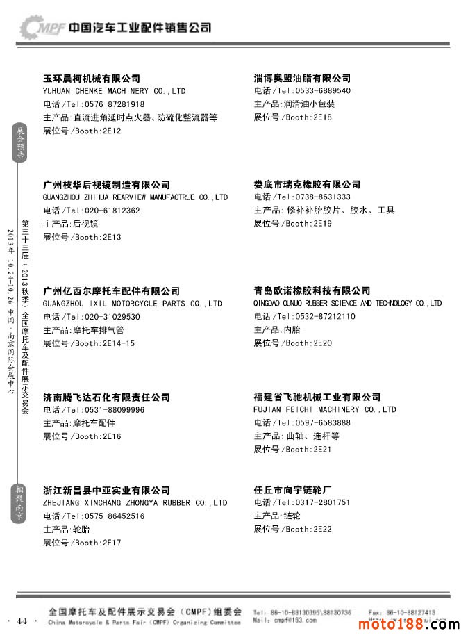 第33届春季(济南)全国摩托车及配件展示交易会参展企业名录