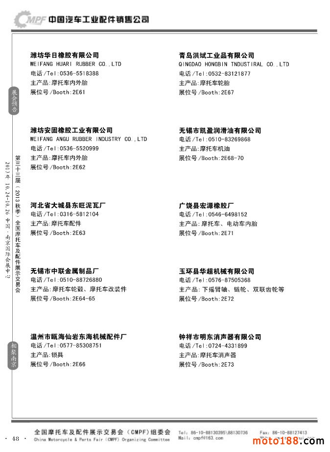 第33届春季(济南)全国摩托车及配件展示交易会参展企业名录