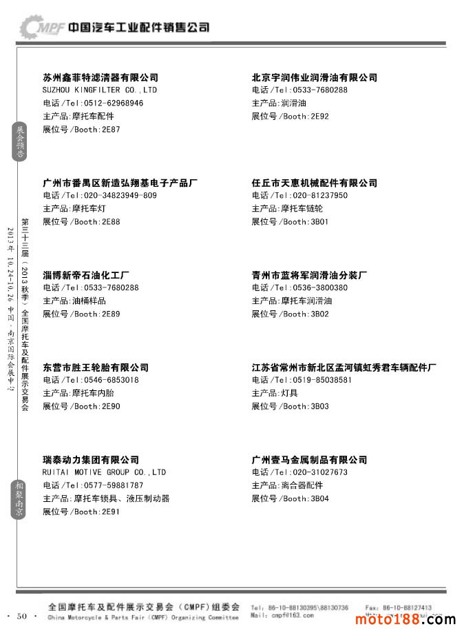 第33届春季(济南)全国摩托车及配件展示交易会参展企业名录