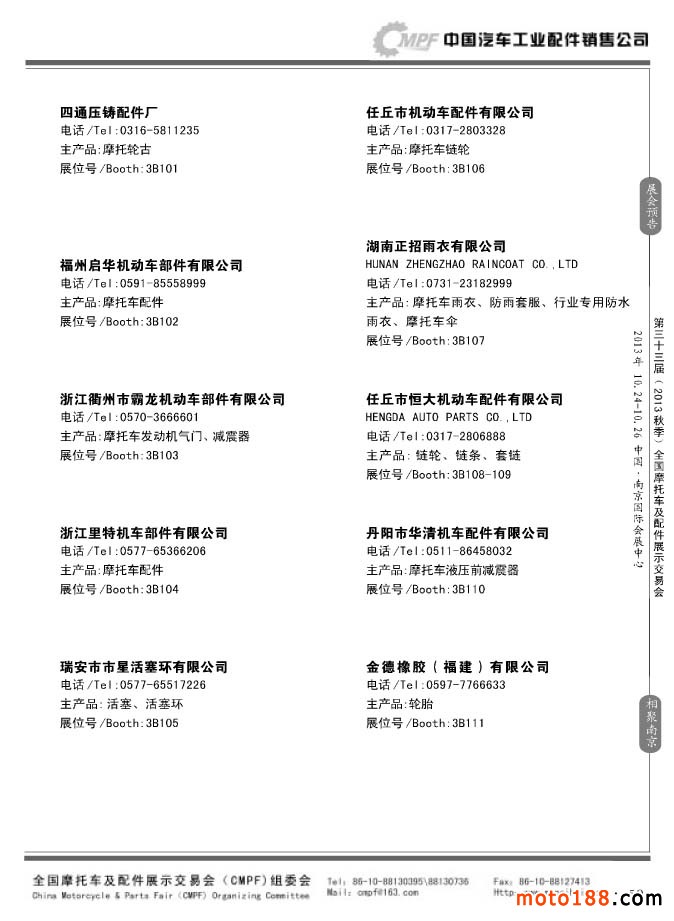 第33届春季(济南)全国摩托车及配件展示交易会参展企业名录