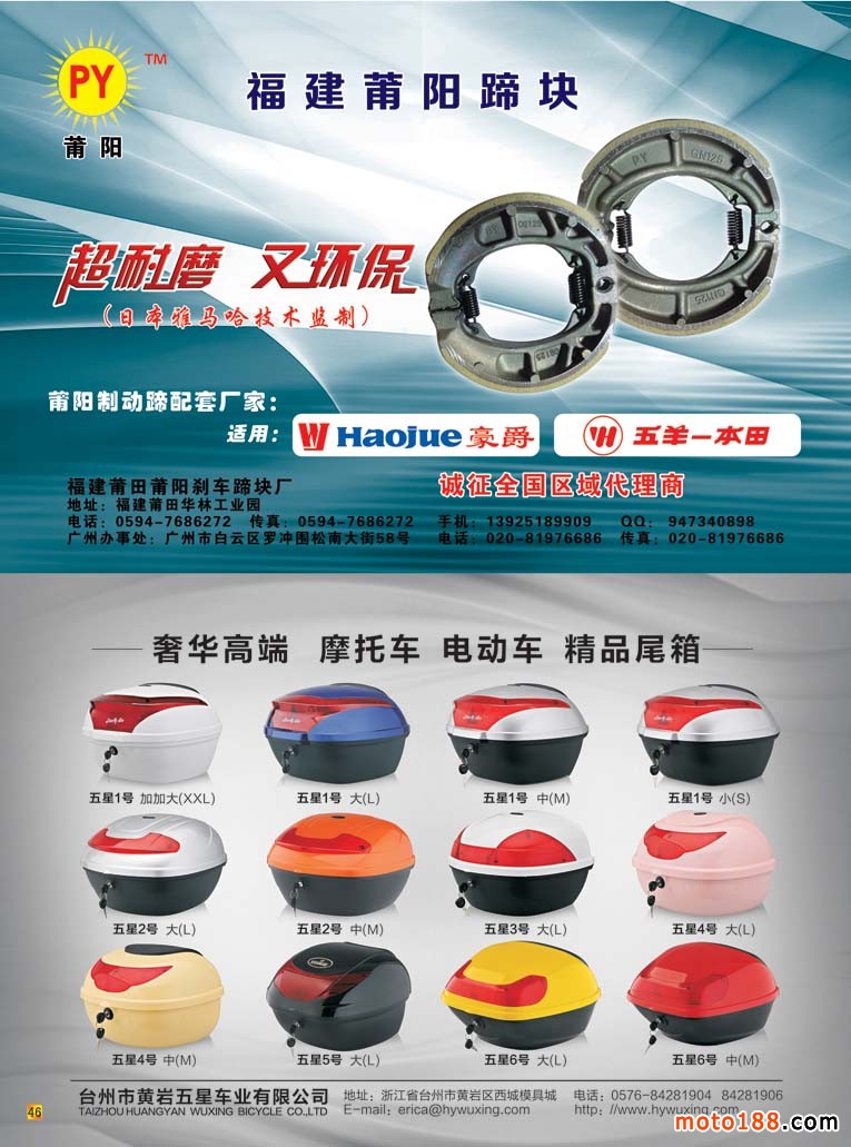 后彩46 福建莆田莆阳刹车蹄块厂+台州市黄岩五星车业有限公司
