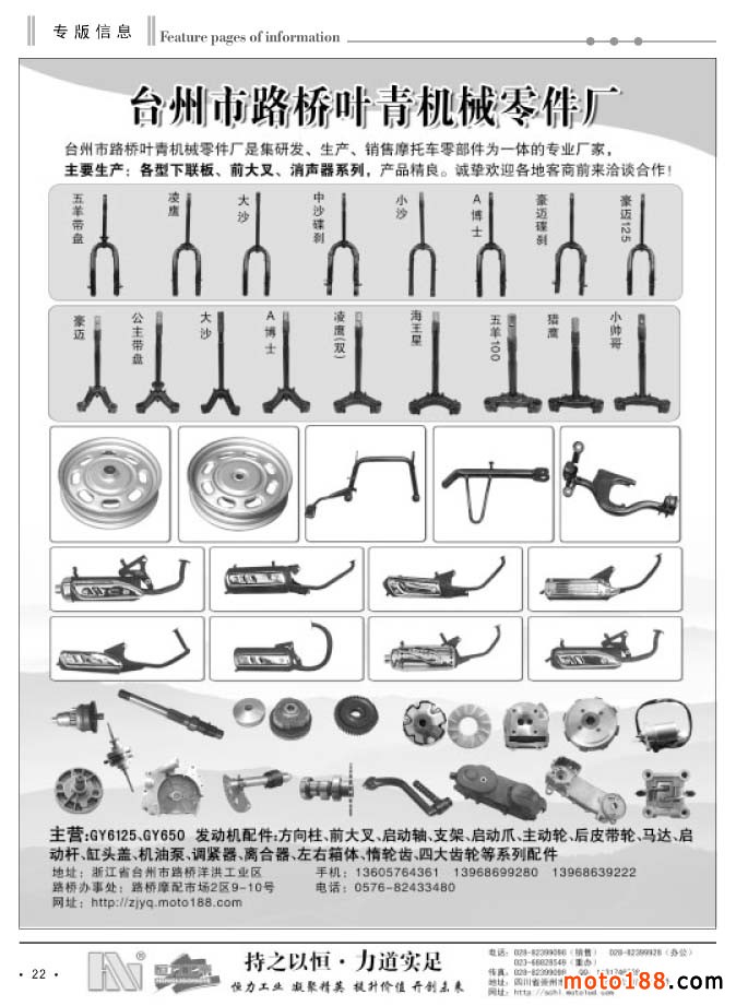 在这个淡季里,我们还将去西北和东北送书、送报上万,走访调研这些地区的市场。再次强调,我们送的书是今年上半年在济南全摩会首发的新版《中国摩托车配件生产企业大全》,送的报纸是《摩托车与配件外贸报》。我们的杂志还是由全国各发行点直接发放给市场上的经营商户。目前《大全》已完成在山东、河北、广东和重庆等省市的主要市场的发行。今年年底之前完成对全国市场的投放。