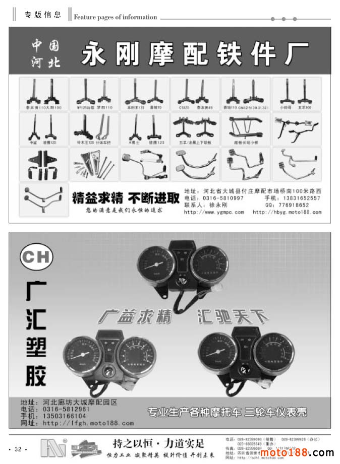 经过几次改刊后的发行情况来看,我们这种根据市场变化灵活出刊的形式逐步被企业所认可。在发行上我们也是没有打折扣,月出刊两期后,黑白的内容要比过去丰富得多,可读性也在增强。六月变单期后,我们另增加8页黑白的文字信息内容,黑白每期为40页。由于北方市场和南方市场淡旺季同期相反,所以在南方的淡季里,我们杂志在北方市场的发行数量将增加。不管南北市场淡旺不同,对我们来说,我们仍将一如既往地做好我们的工作。从今年6月份开始,我们工作人员将分别去福建、浙江、安徽和江西四省,走访调研这四省的摩配市场,并将派送上万份《外贸报》和工具书《配件生产企业大全》。同时,我们还将收集市场的最新资料,为下半年的《华东市场指南》做出书的准备工作。目前这项工作进展顺利,广告征集也在稳步进行。完成这些省份的调研工作,我们的信息采集工作也就到了收官阶段。工作进展快的话,我们就会提前结束这本书的编排。在10月24日的南京全摩会上,大家就可以看到这本书了。