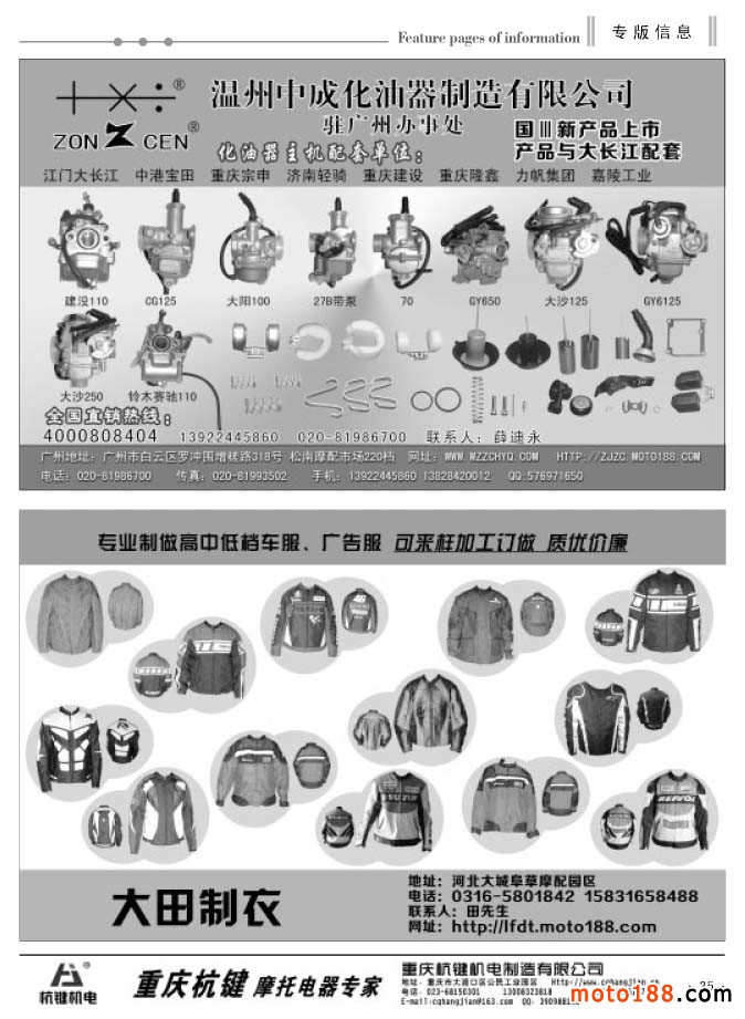在这个淡季里,我们还将去西北和东北送书、送报上万,走访调研这些地区的市场。再次强调,我们送的书是今年上半年在济南全摩会首发的新版《中国摩托车配件生产企业大全》,送的报纸是《摩托车与配件外贸报》。我们的杂志还是由全国各发行点直接发放给市场上的经营商户。目前《大全》已完成在山东、河北、广东和重庆等省市的主要市场的发行。今年年底之前完成对全国市场的投放。