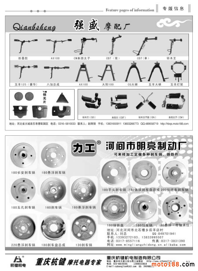 在这个淡季里,我们还将去西北和东北送书、送报上万,走访调研这些地区的市场。再次强调,我们送的书是今年上半年在济南全摩会首发的新版《中国摩托车配件生产企业大全》,送的报纸是《摩托车与配件外贸报》。我们的杂志还是由全国各发行点直接发放给市场上的经营商户。目前《大全》已完成在山东、河北、广东和重庆等省市的主要市场的发行。今年年底之前完成对全国市场的投放。
