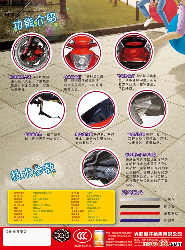 光阳本着 "Better than Best" 的企业宗旨,正式向全世界宣布,我们期望以提供KYMCO优质的动力商品与技术服务为使命,启动人类的生活动力,让拥有国际品牌的KYMCO带领您进入便利、安全、休闲、娱乐的动力世界。