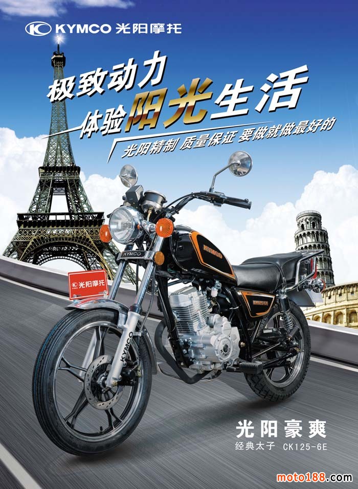 光阳本着 "Better than Best" 的企业宗旨,正式向全世界宣布,我们期望以提供KYMCO优质的动力商品与技术服务为使命,启动人类的生活动力,让拥有国际品牌的KYMCO带领您进入便利、安全、休闲、娱乐的动力世界。