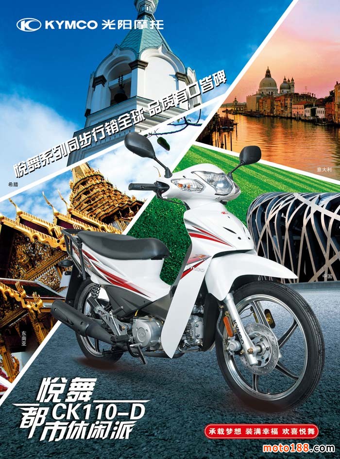光阳本着 "Better than Best" 的企业宗旨,正式向全世界宣布,我们期望以提供KYMCO优质的动力商品与技术服务为使命,启动人类的生活动力,让拥有国际品牌的KYMCO带领您进入便利、安全、休闲、娱乐的动力世界。