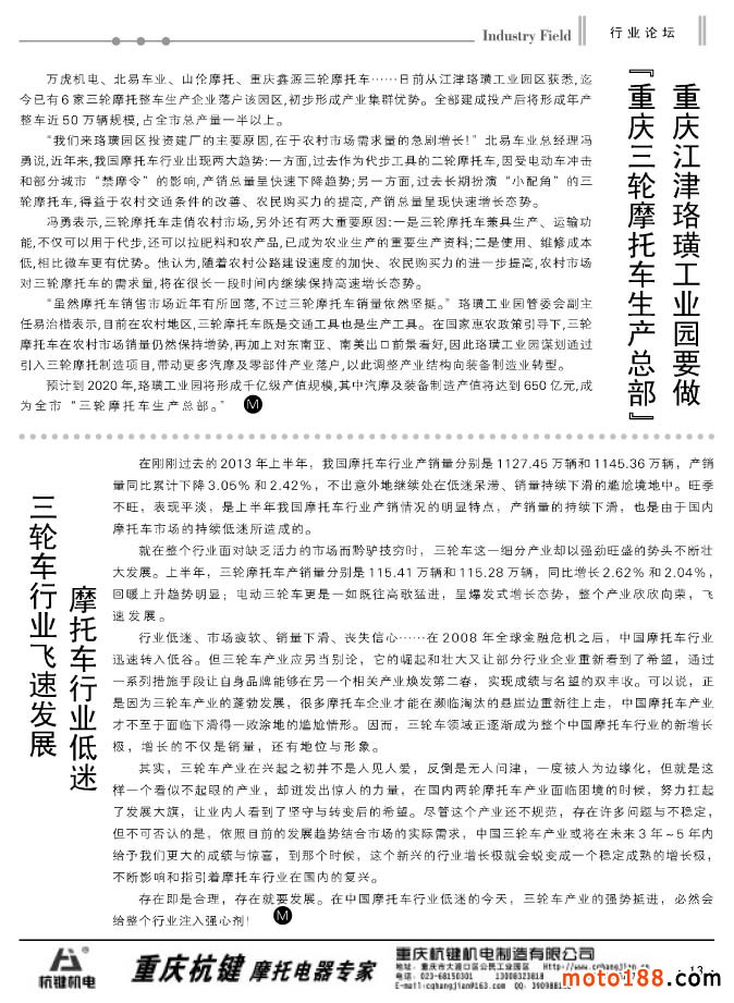 13 重庆江津珞璜工业园要做“重庆三轮摩托车生产总部”+摩托车行业低迷 三轮车行业飞速发展