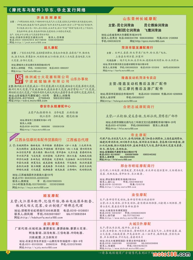 本次杂志因为要参加10月17-20日在重庆国际博览中心举办的第十二届中国国际摩托车博览会,在这个展会上我们还将《中国摩托车配件华东市场指南》带到会上发行,因而我们在过完中秋节后,工作就十分繁忙。为了能保证及时参展,我们都在赶点,这之中还包括国庆假日,印刷厂还要放假,江苏到重庆的在途运输时间等。为了兑现我们出版发行的承诺,我们也只有努力工作。