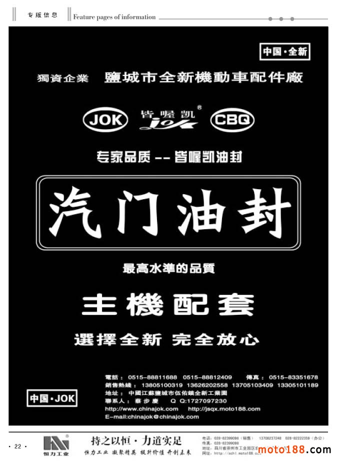 本次杂志因为要参加10月17-20日在重庆国际博览中心举办的第十二届中国国际摩托车博览会,在这个展会上我们还将《中国摩托车配件华东市场指南》带到会上发行,因而我们在过完中秋节后,工作就十分繁忙。为了能保证及时参展,我们都在赶点,这之中还包括国庆假日,印刷厂还要放假,江苏到重庆的在途运输时间等。为了兑现我们出版发行的承诺,我们也只有努力工作。