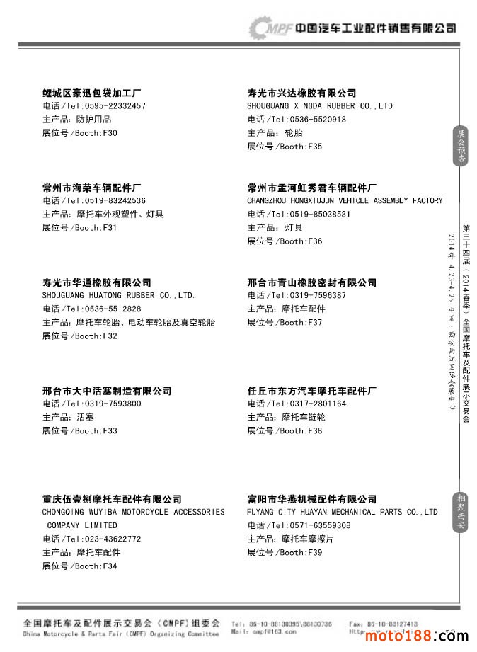 第33届秋季(南京)全国摩托车及配件展示交易会参展企业名录