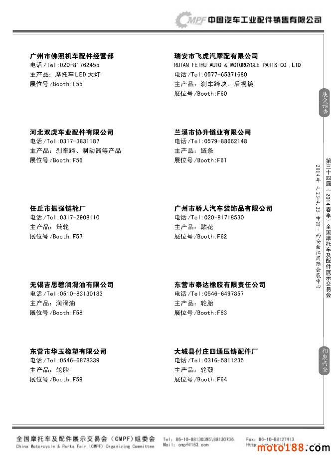 第33届秋季(南京)全国摩托车及配件展示交易会参展企业名录