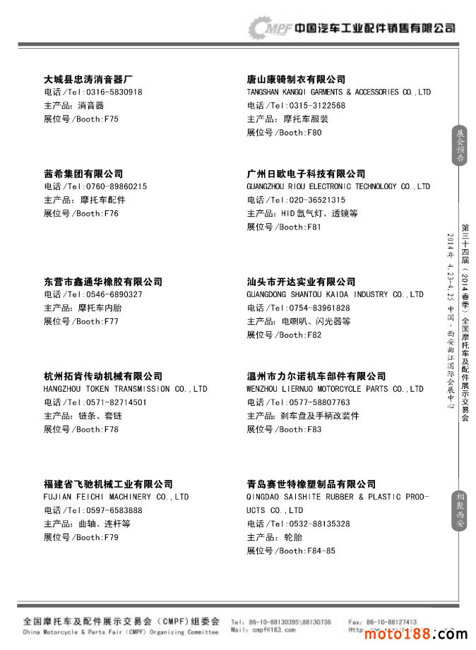 第33届秋季(南京)全国摩托车及配件展示交易会参展企业名录