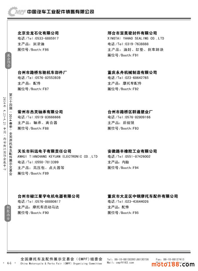 第33届秋季(南京)全国摩托车及配件展示交易会参展企业名录
