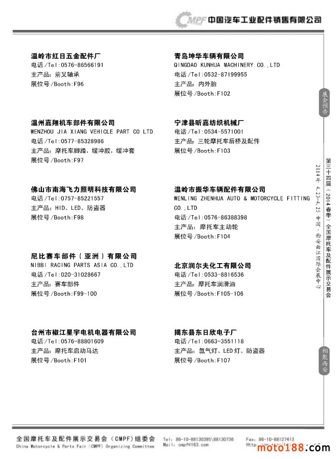 第33届秋季(南京)全国摩托车及配件展示交易会参展企业名录