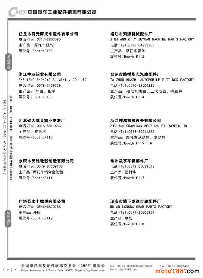第33届秋季(南京)全国摩托车及配件展示交易会参展企业名录