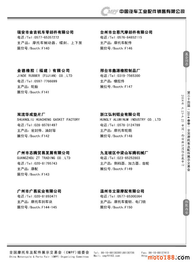 第33届秋季(南京)全国摩托车及配件展示交易会参展企业名录