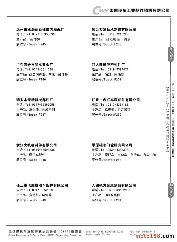 第33届秋季(南京)全国摩托车及配件展示交易会参展企业名录